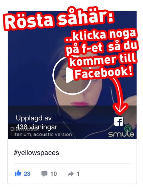 Vill DU sjunga? Se hur SMULE appen gör med din sång och video i exemplet nedan. Ladda sedan ner appen SMULE och testa. Det finns MASSOR av låtar att sjunga till. Man behöver inte lägga ut sig på nätet.. MEN delta i tävligen om du är nöjd (eller dina supporters tycker om din video). Läs vidare exakt hur du ska göra.